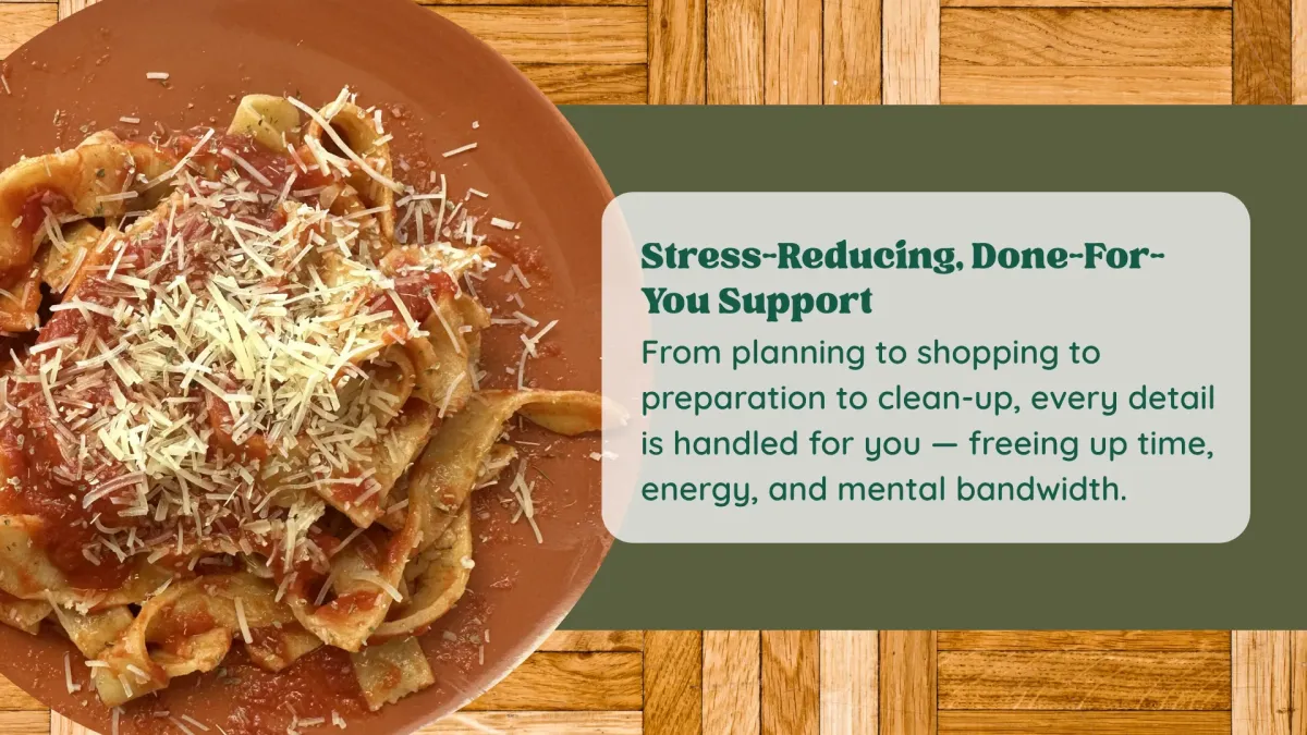 Rather than sending food delivery or a traditional gift basket, a care package offers home-cooked meals prepared right in the recipient’s kitchen, leaving their fridge stocked with nourishing food and their space clean and cared for.